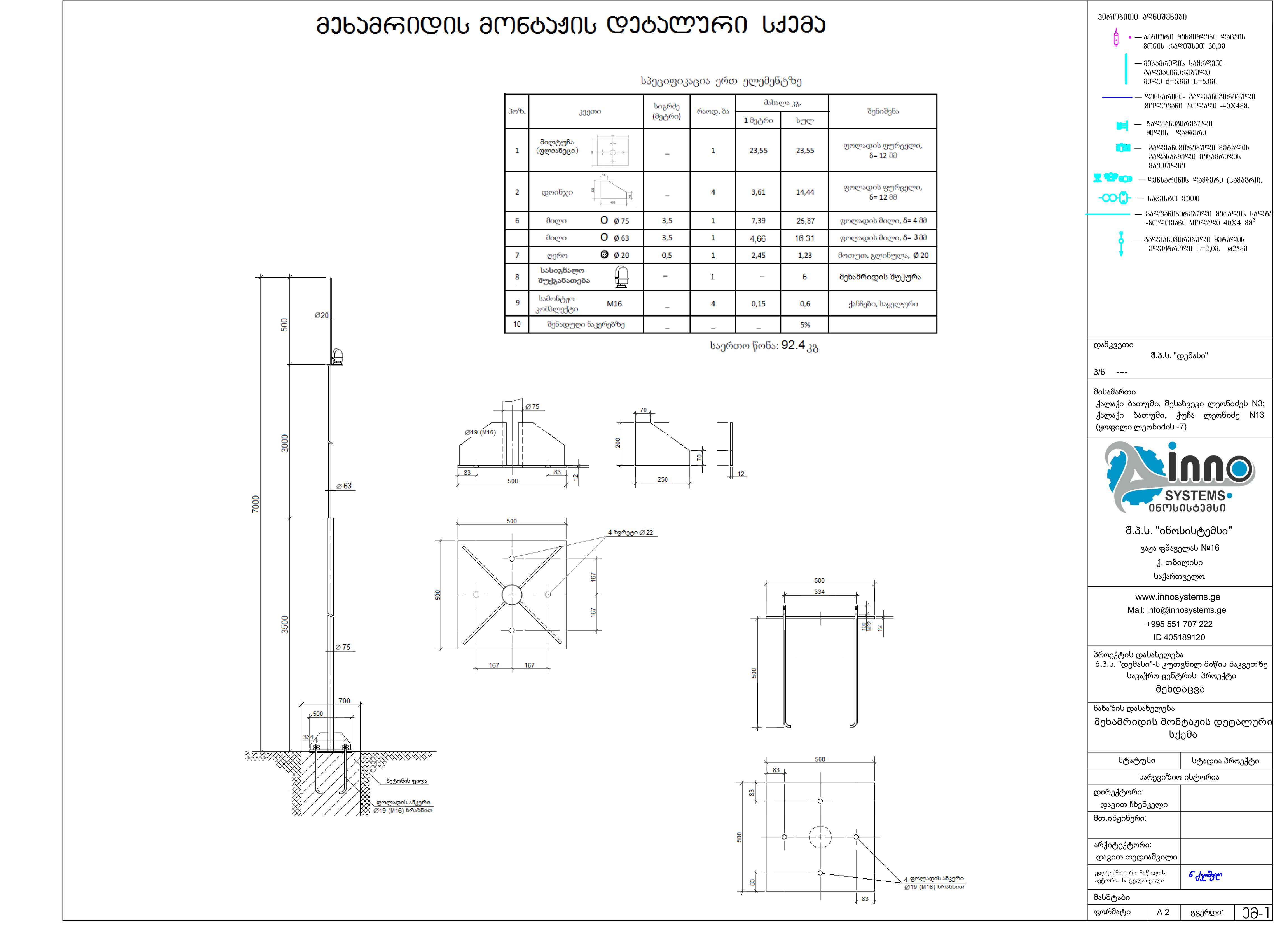 მეხამრიდის კონტურის ყველა ელემენტი შესრულებული უნდაიყოს გალვანიზებული მეტალით. დაუშვებელია შედუღებით გადაბმა.რადგან გრუნტის მონაცემების სათანადო შესწავლა არჩატარებულა, მონტაჟის დამთავრების შემდეგ ჩამიწებისკონტურზე უნდა ჩატარდეს შესაბამისი გაზომვები; საჭიროების შემთხვევაში ჩამიწების კონტურს დაემატოსვერტიკალური ჩამამიწებლებიელექტროდები.